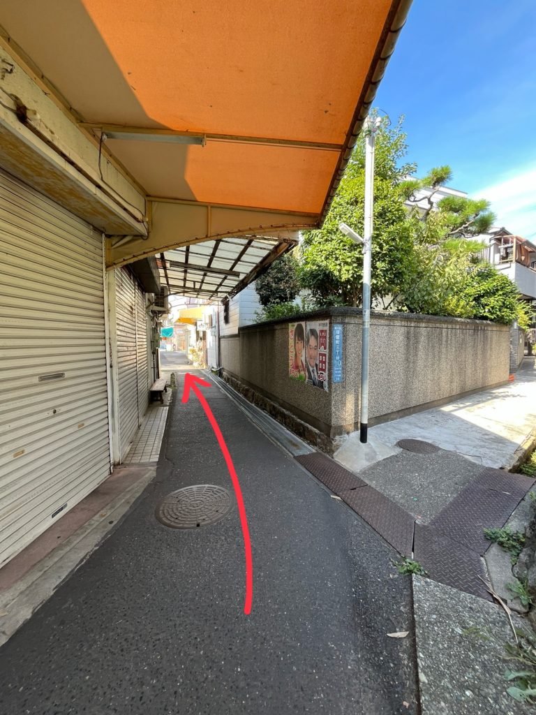 細かい分かれ道はありますが、左側のお店の立ち並んでいるところ(休日は閉まっていることが多いです)に沿ってまっすぐ進みます。